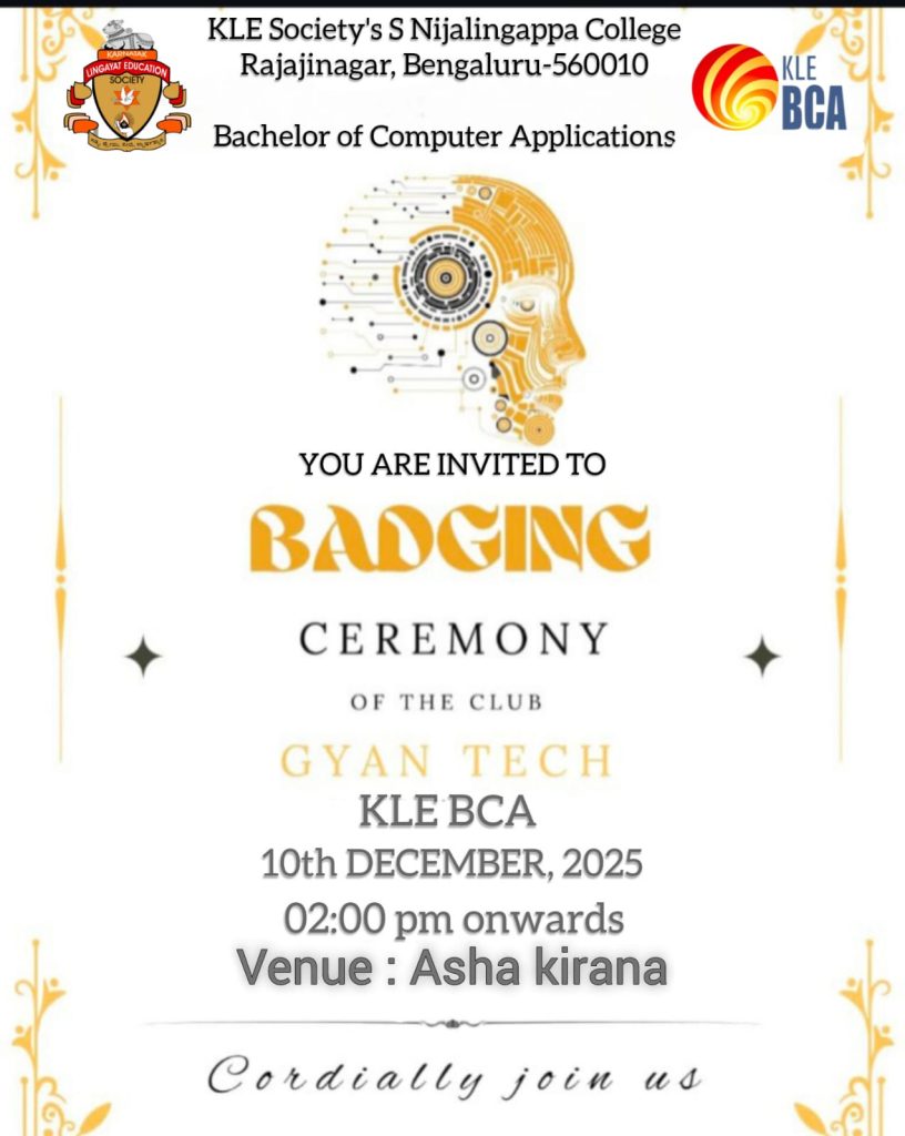 Title: You Are Invited To Badging Ceremony Of The Club Gyan Tech Date: 10th DECEMBER, 2025 Time: 02:00 pm onwards Venue: Asha kirana